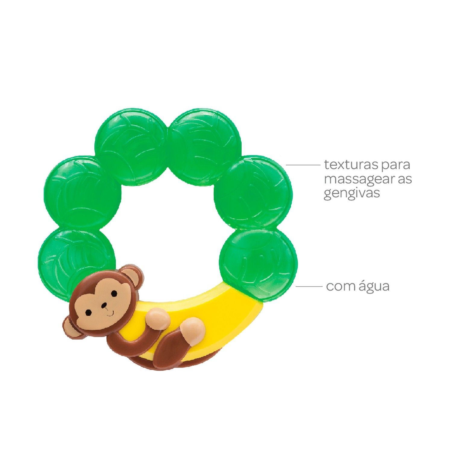Com formato anatômico, o acessório é feito de silicone macio e texturizado, proporcionando um efeito calmante nas gengivas.