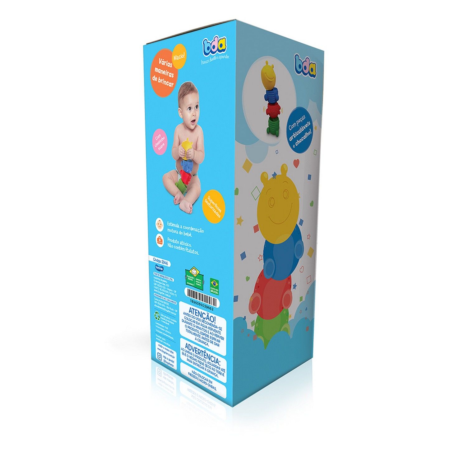 Com design divertido que remete a uma simpática lagarta, o acessório vai instigar a criatividade e imaginação dos pequenos com diversos estímulos sensoriais.