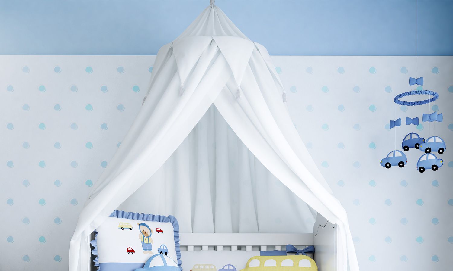 Para proteger o pequeno príncipe das picadas de mosquitos e pernilongos, o Mosquiteiro Dossel de Teto Transpassado com Tassel Ursinho Bebê Azul é a sua melhor escolha. Feito em voil 100% poliéster e armação de plástico, esse mosquiteiro mantém o pequenino em segurança e acrescenta charme ao berço, já que seu design tem detalhes de triângulo com tassel nas pontas, que também são conhecidos como aquelas charmosas franjinhas.