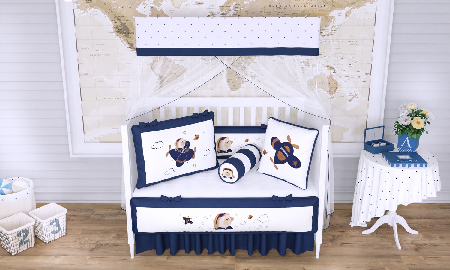 Um pedacinho do céu chegou para brilhar na decoração do quarto de bebê! Pensando na proteção e conforto do pequeno, criamos o Mosquiteiro da Coleção Urso Aviador, um acessório indispensável para garantir que o seu tesouro tenha uma noite de sono tranquila e aconchegante. Ele impede a passagem de mosquitos, pernilongos e insetos, protegendo seu meninão das picadas e incômodos durante a hora do descanso. Esse modelo exclusivo com varal de tule traz um bandô com estrelinhas num bordado exclusivo que vai arrancar suspiros e completar a atmosfera encantadora do cantinho com muito charme!