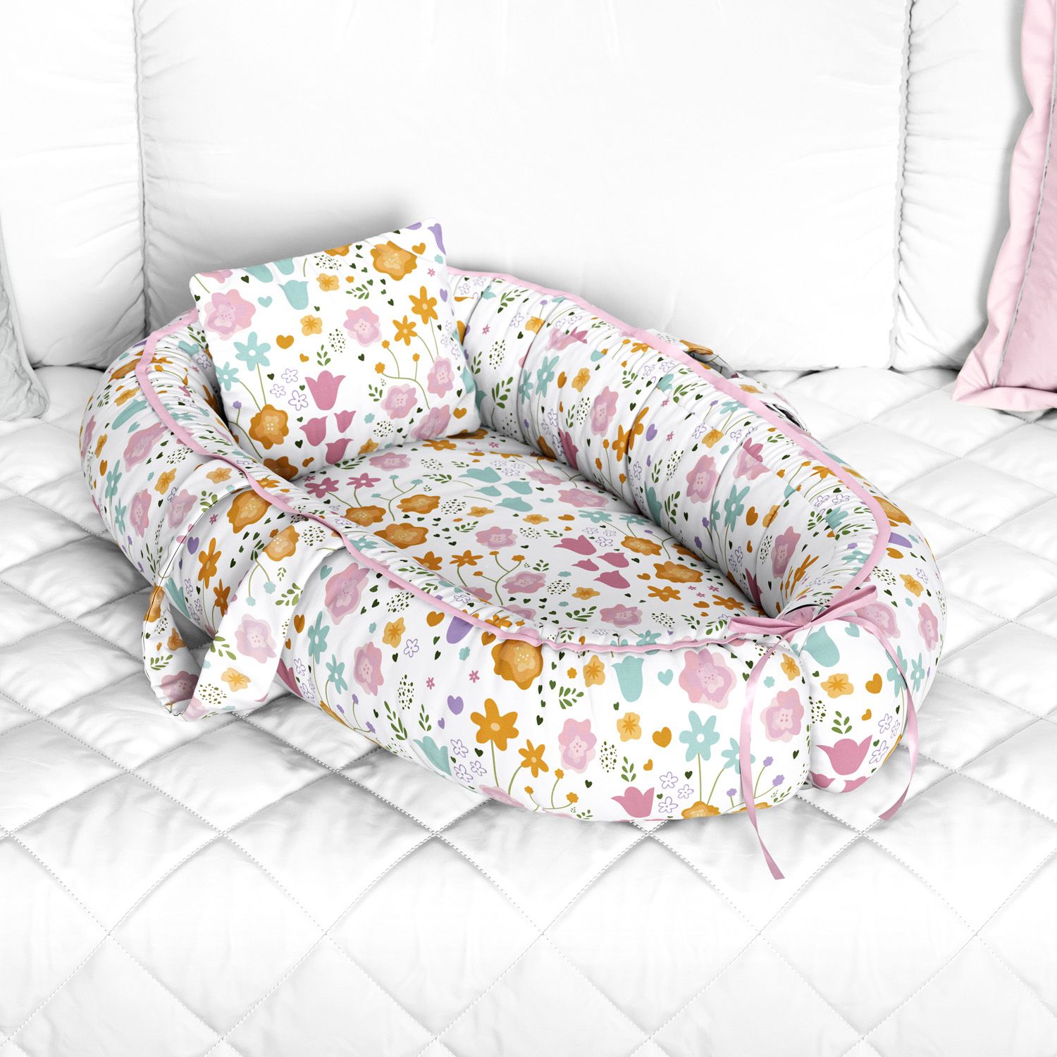 Ninho para Bebê Redutor de Berço Buquê de Flores Colorido 80cm