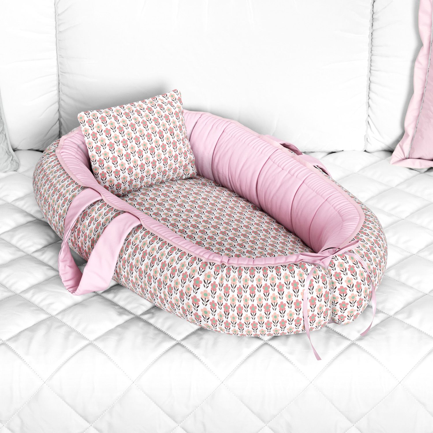 Ninho para Bebê Redutor de Berço Flor do Campo Rosa 80cm