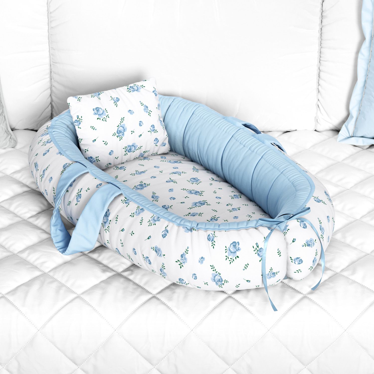 Ninho para Bebê Redutor de Berço Floral Liberty Azul 80cm