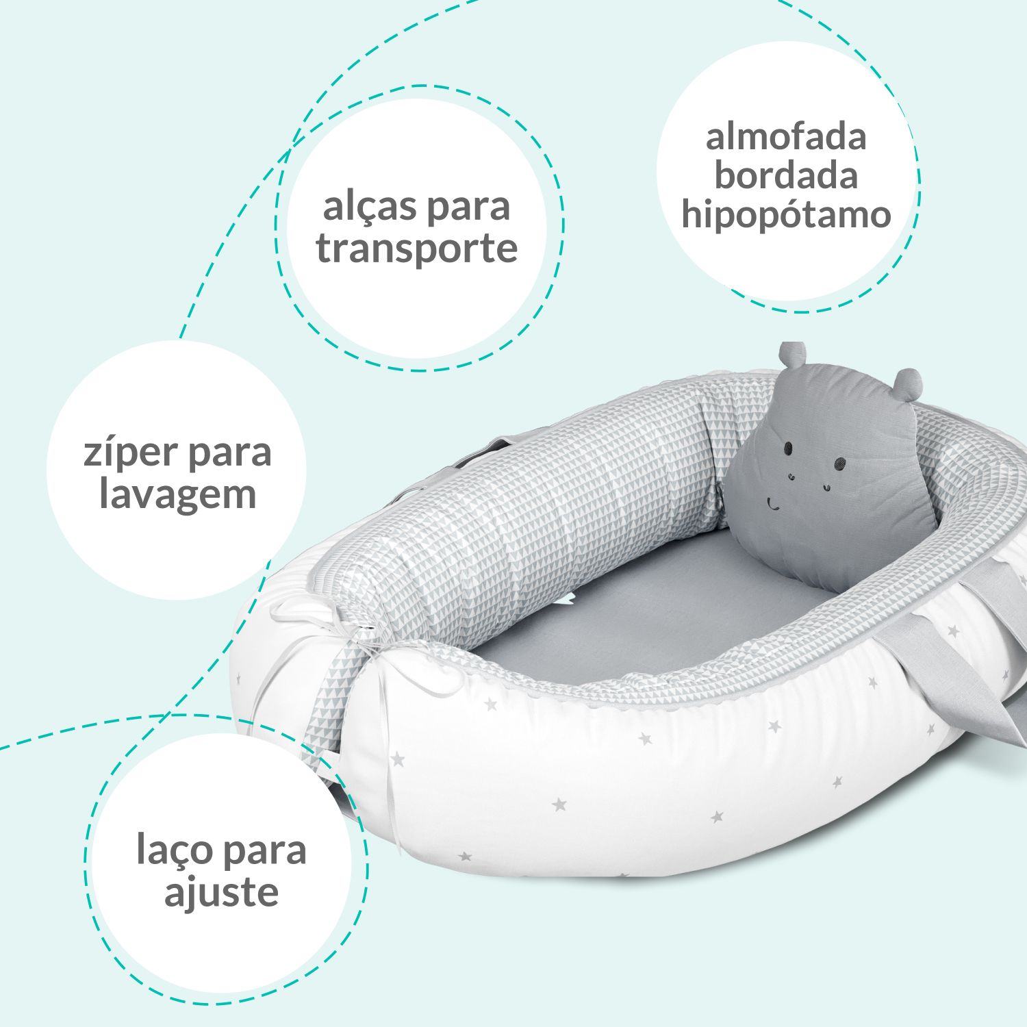 Ninho para Bebê Redutor de Berço Hipopótamo Estrelinha 80cm
