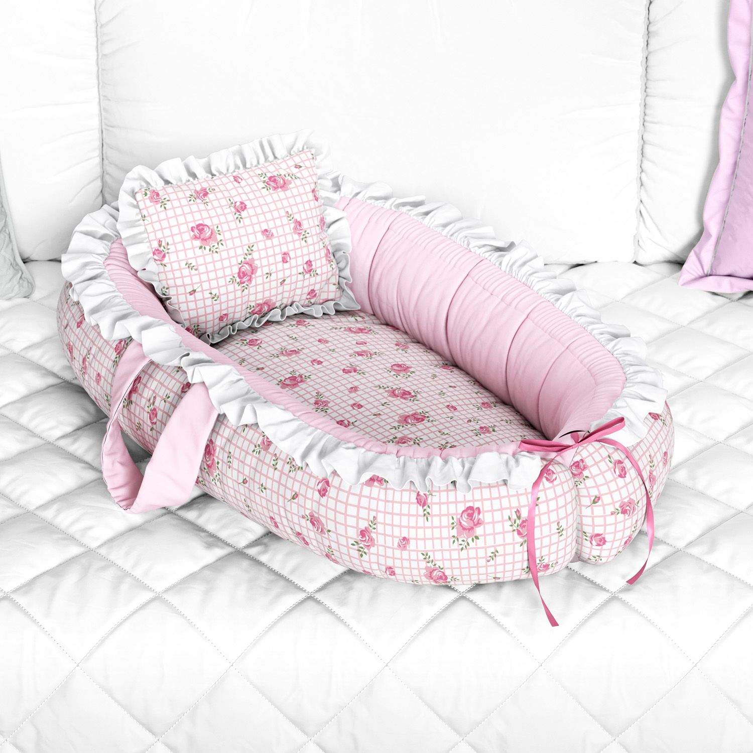 Ninho para Bebê Redutor de Berço Rosas Xadrez 80cm