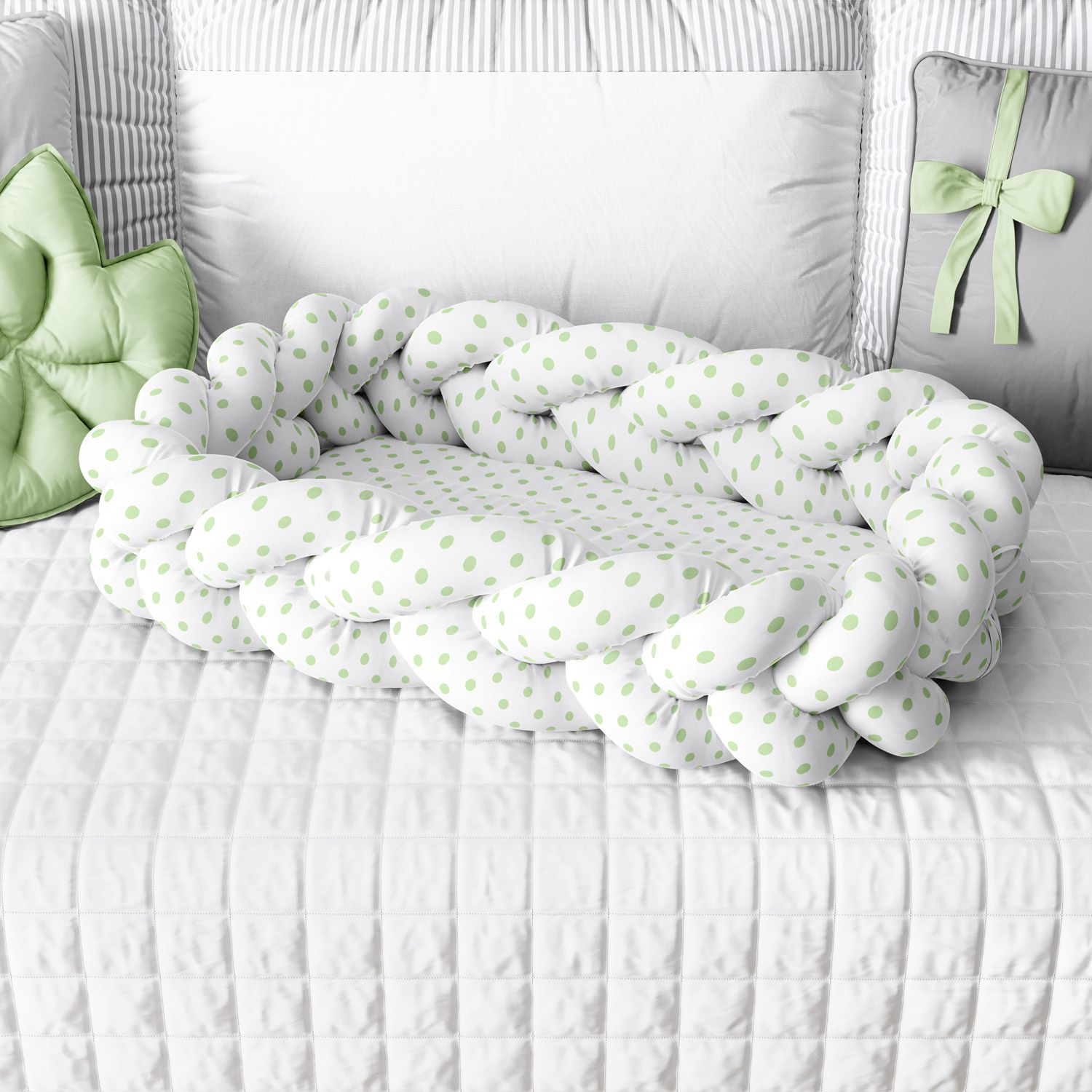 Ninho para Bebê Trança com Mosquiteiro Poá Verde 80cm