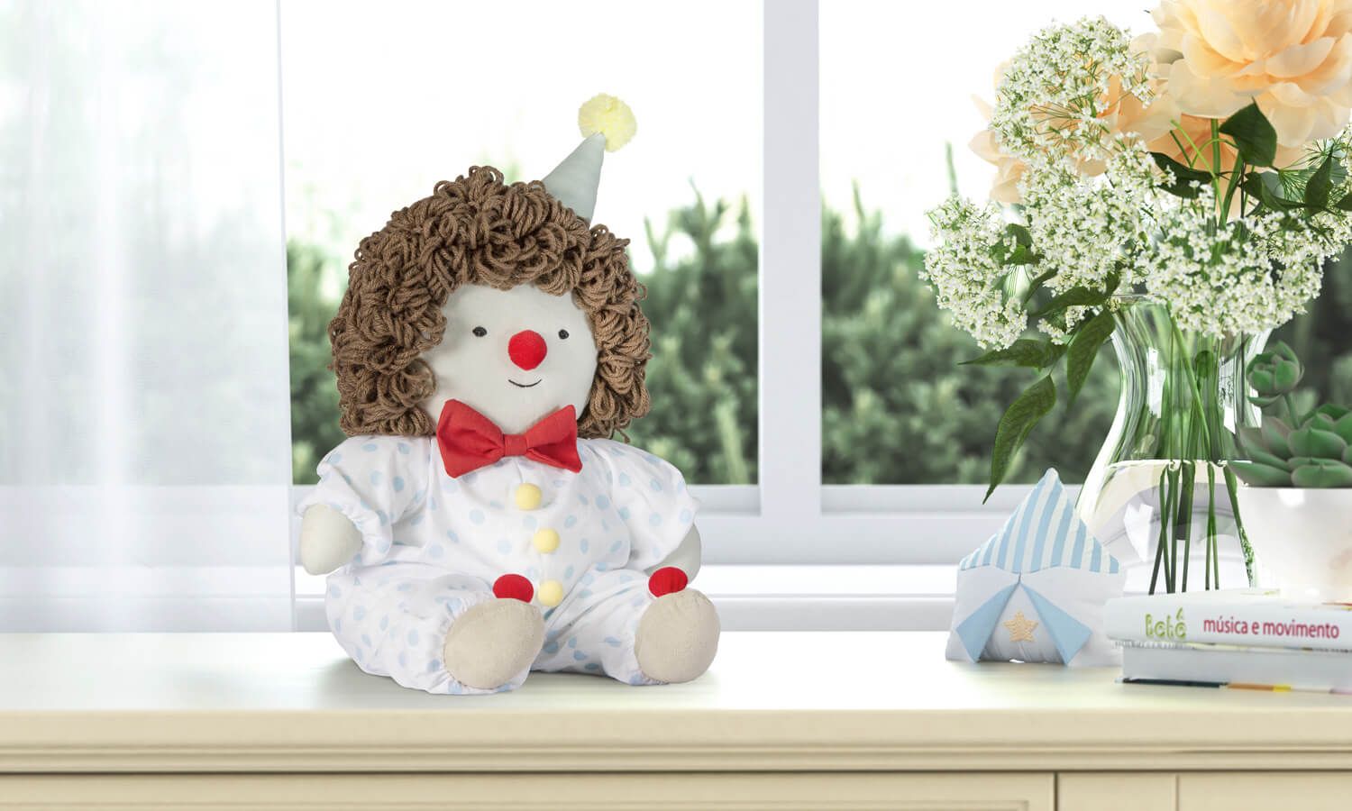 No circo tem palhaço? Tem sim senhor! O Palhacinho Baby do Circo 45cm da Linha Sabrina Sato Mom é sinônimo de diversão para o quarto dos sonhos. Ideal para decorar ou até mesmo brincar, confeccionado com cabelinho de lã, tecido plush e enchimento macio, seu menino vai adorar abraçá-lo esse palhacinho divertido e companheiro!