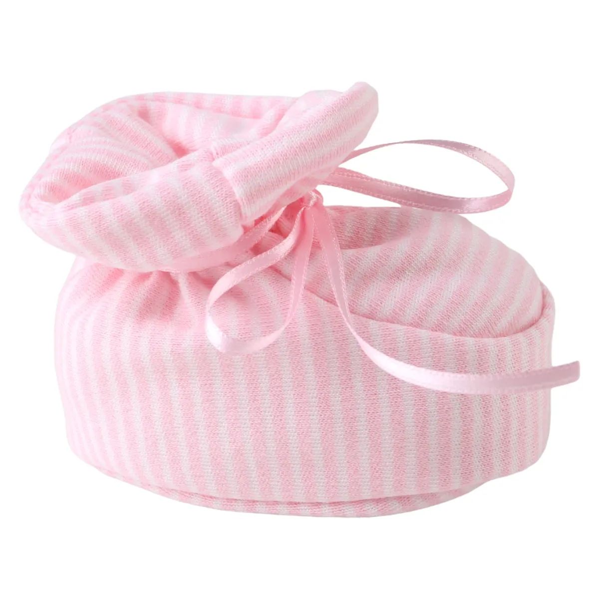 A Pantufa Chutinho da linha Beijinho é indicado para bebês de 0 a 6 meses, confeccionada em tecido algodão, garantem proteção e conforto. Este modelo é em malha canelada, além de possuir fita para amarrar de cetim.