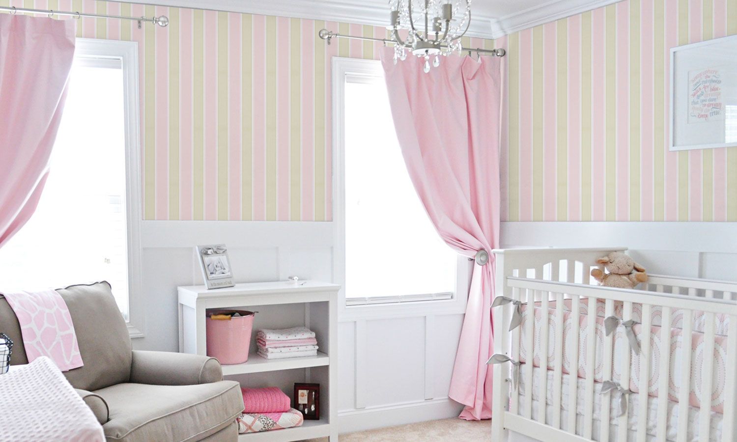 Papel de Parede Listrado Bege/Rosa 10m