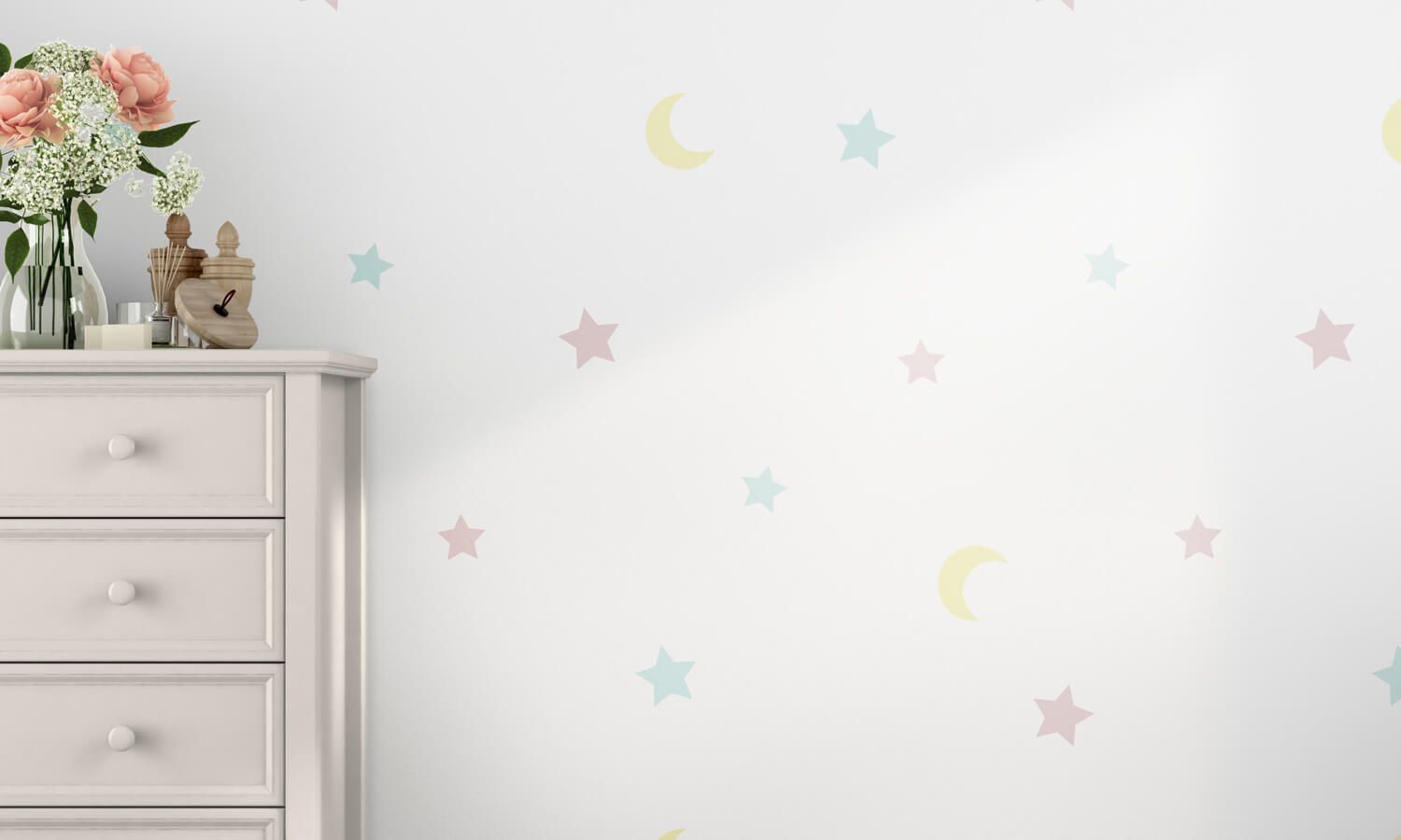 Decore cada cantinho do quarto de bebê com esse lindo Papel de Parede Luas e Estrelas 3mda Linha Sabrina Sato Mom e torne o quartinho mais especial da casa em um ambiente repleto de encanto!