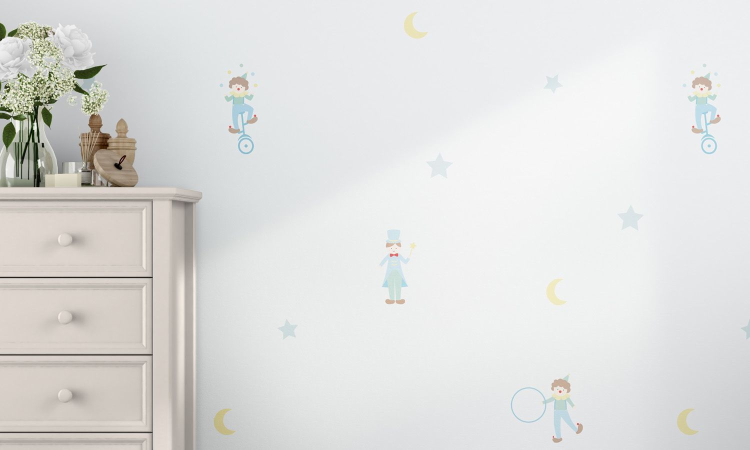 Decore cada cantinho do quarto de bebê com esse lindo Papel de Parede Mágico e Palhacinho 3m e torne o quartinho mais especial da casa um ambiente repleto de encanto!