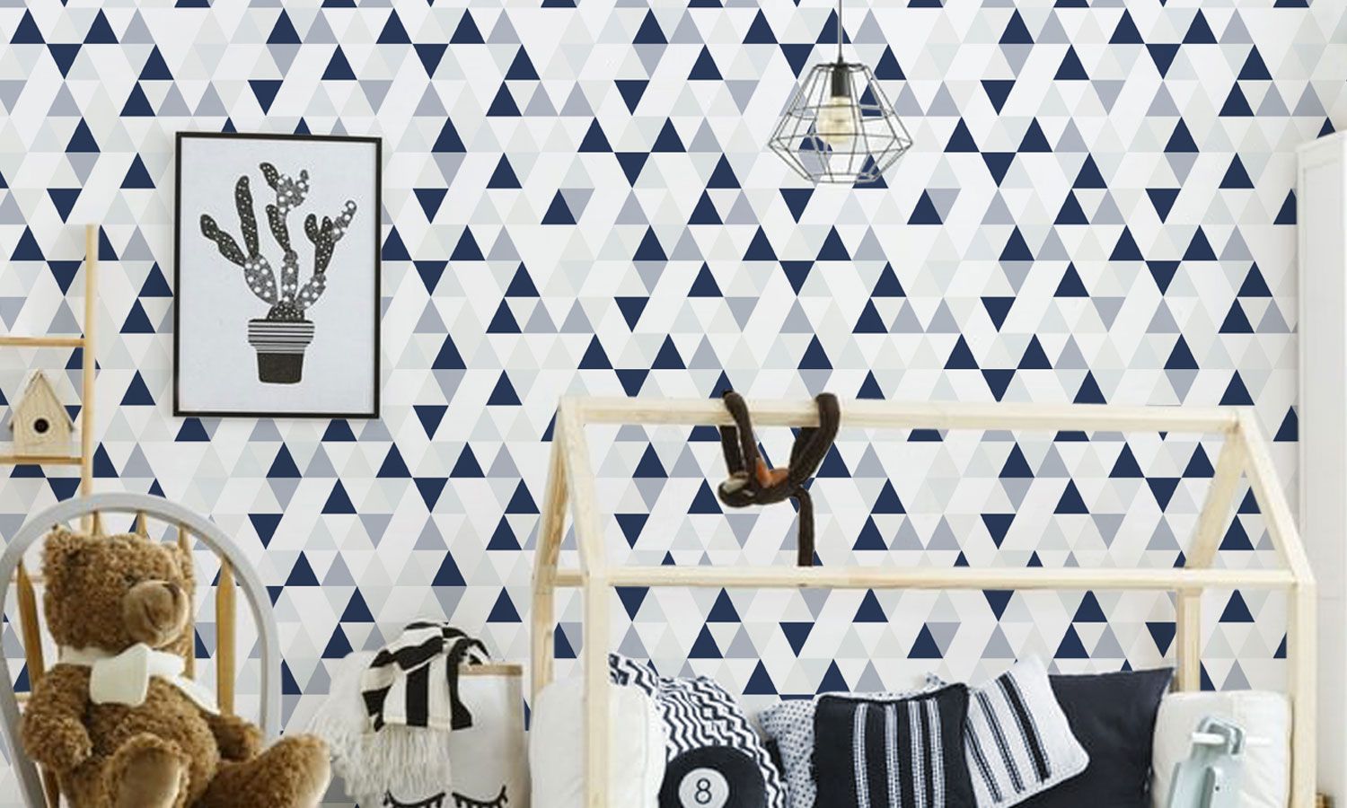 Papel de Parede Triângulos Azul Marinho/Cinza 10m