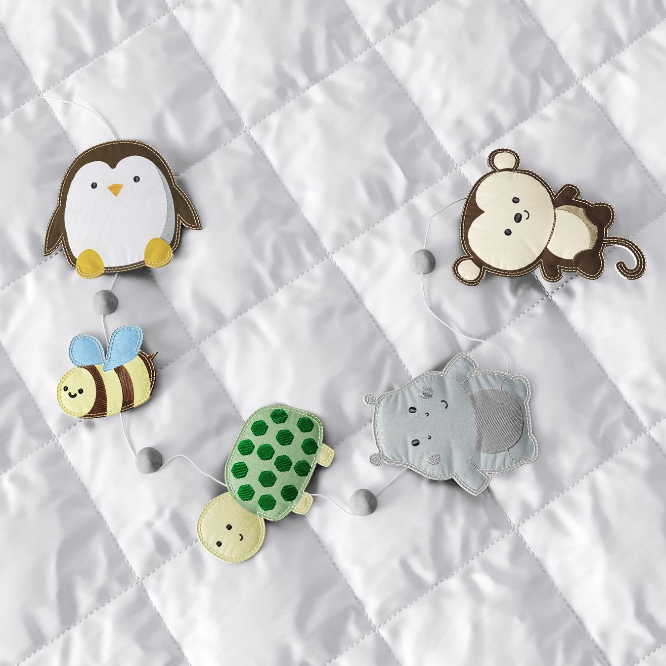 Com o Pêndulo Cortina Arca dos Bichinhos, você adiciona um toque lúdico e original à decoração do quarto de bebê ou infantil. Um acessório com bordados exclusivos da Grão de Gente composto por um macaquinho, pinguim, abelha, tartaruga e hipopótamo, que vai surpreender a todos com sua delicadeza e criatividade.