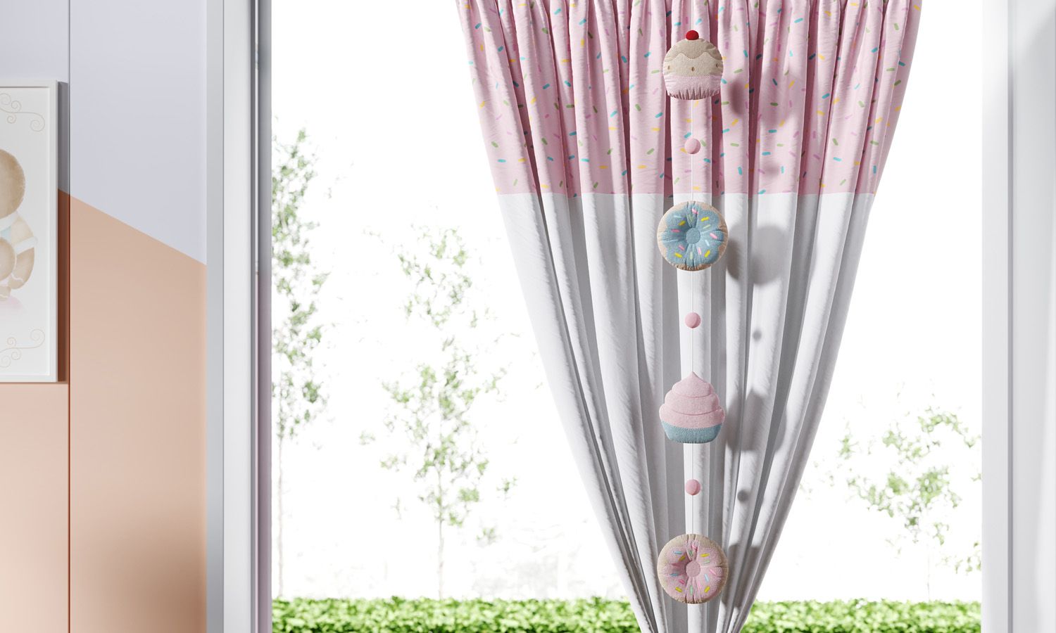 Pêndulo Cortina Cupcakes e Donuts Doce Encanto
