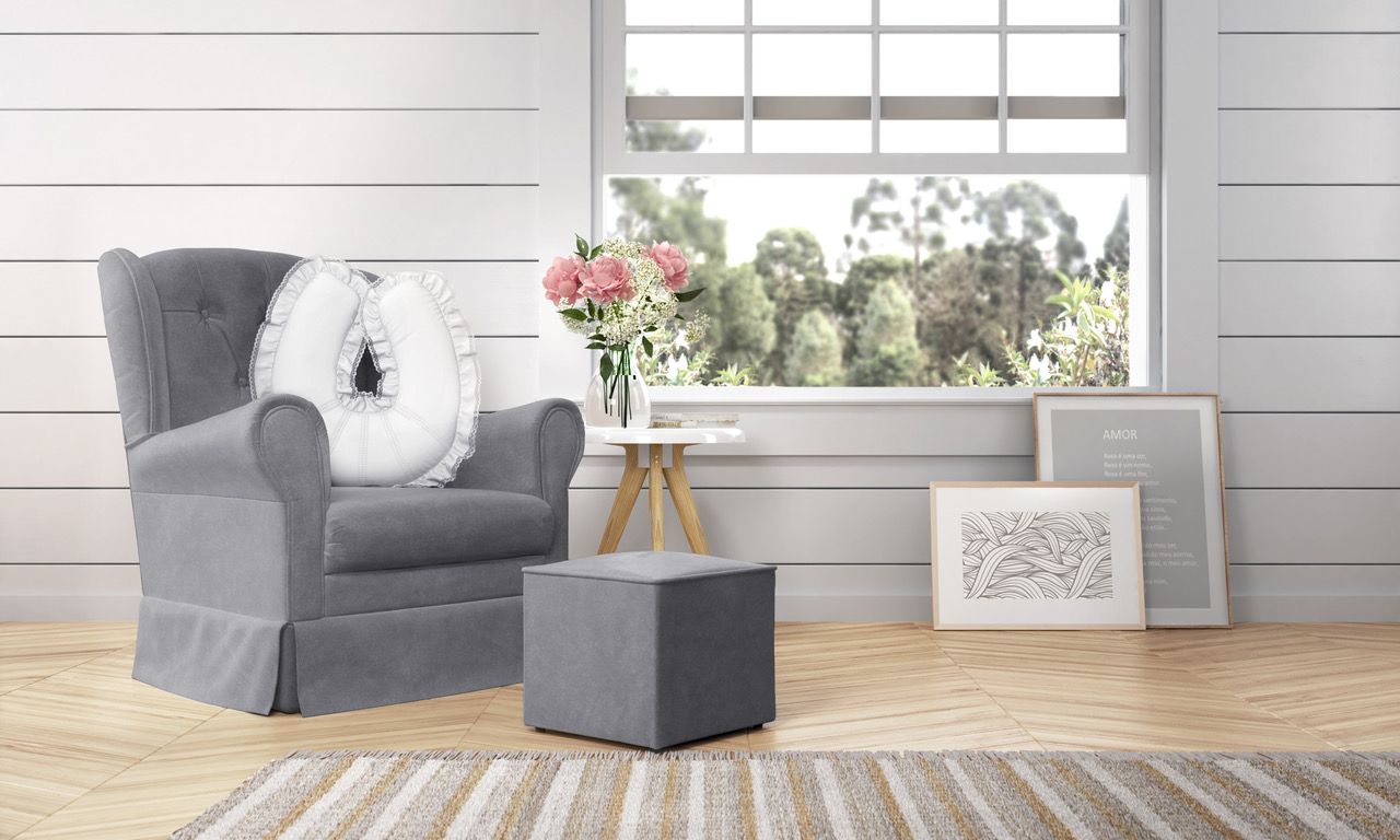 Poltrona Amamentação Balanço com Puff Provençal Cinza