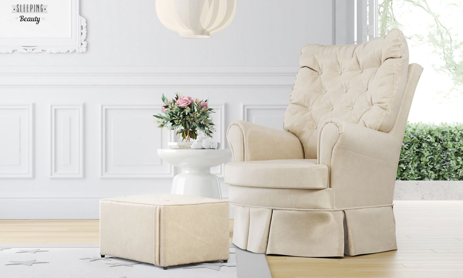 Poltrona Amamentação Balanço e Giratória com Puff Luxo Palha