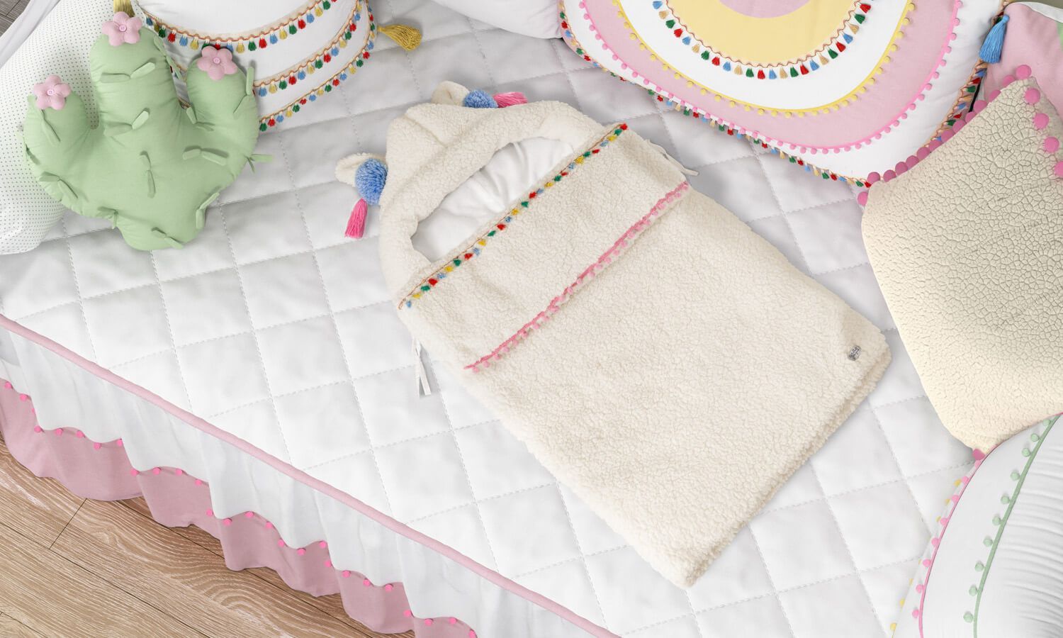 Seu design é apaixonante, com direito a capuz com formato de uma lhamita encantadora enfeitada com as franjinhas tassel, mini pompons e muito capricho. Esse porta bebê é garantia de aconchego e perfeito para o seu amor embalar um soninho bem gostoso!