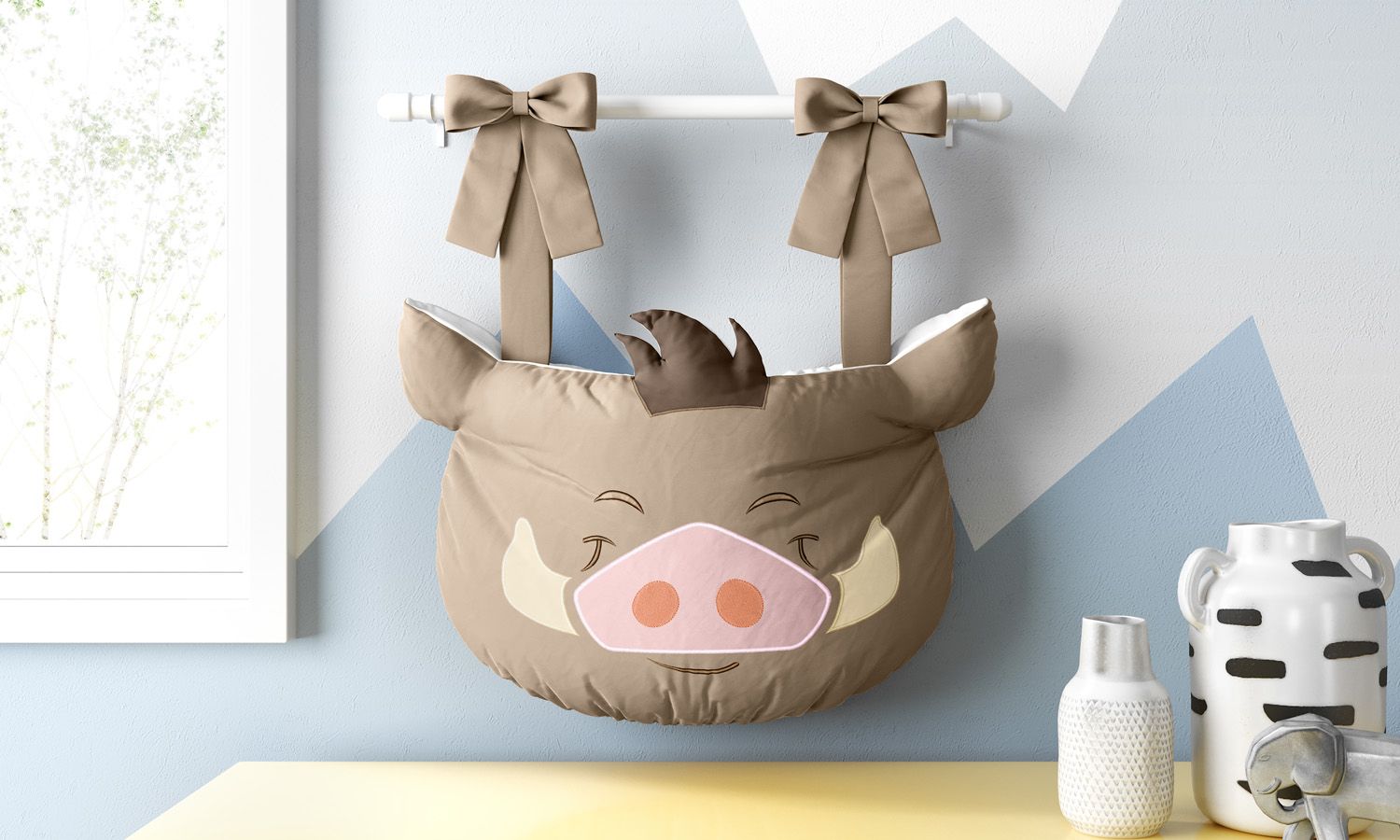 O Quarto de Bebê Amiguinhos O Rei Leão vai ficar ainda mais divertido e organizado com o Porta Fraldas Amiguinho Pumba! Esse acessório exclusivo da Grão de Gente dá um show de praticidade e pode ser usado como porta-treco, fixado ao berço, cabideiro de parede ou varão. Uma peça estruturada com bordado oficial do acervo Disney para criar uma decoração como você nunca viu!