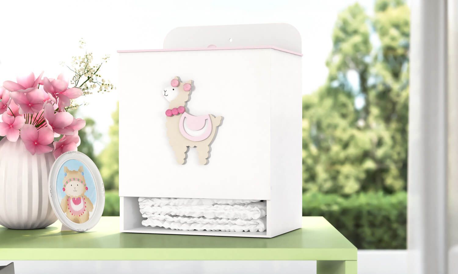 Com uma graciosa aplicação de lhama, o Porta Fraldas MDF Lhama da coleção Amiguinhas Lhamas – Linha Sabrina Sato Mom é garantia de funcionalidade e charme para o quarto de bebê. Esse acessório permite que as fraldas fiquem sempre à mão, facilitando a rotina de cuidados com a higiene da pequena. Confeccionado com a resistência da madeira 100% MDF, sinônimo de durabilidade.