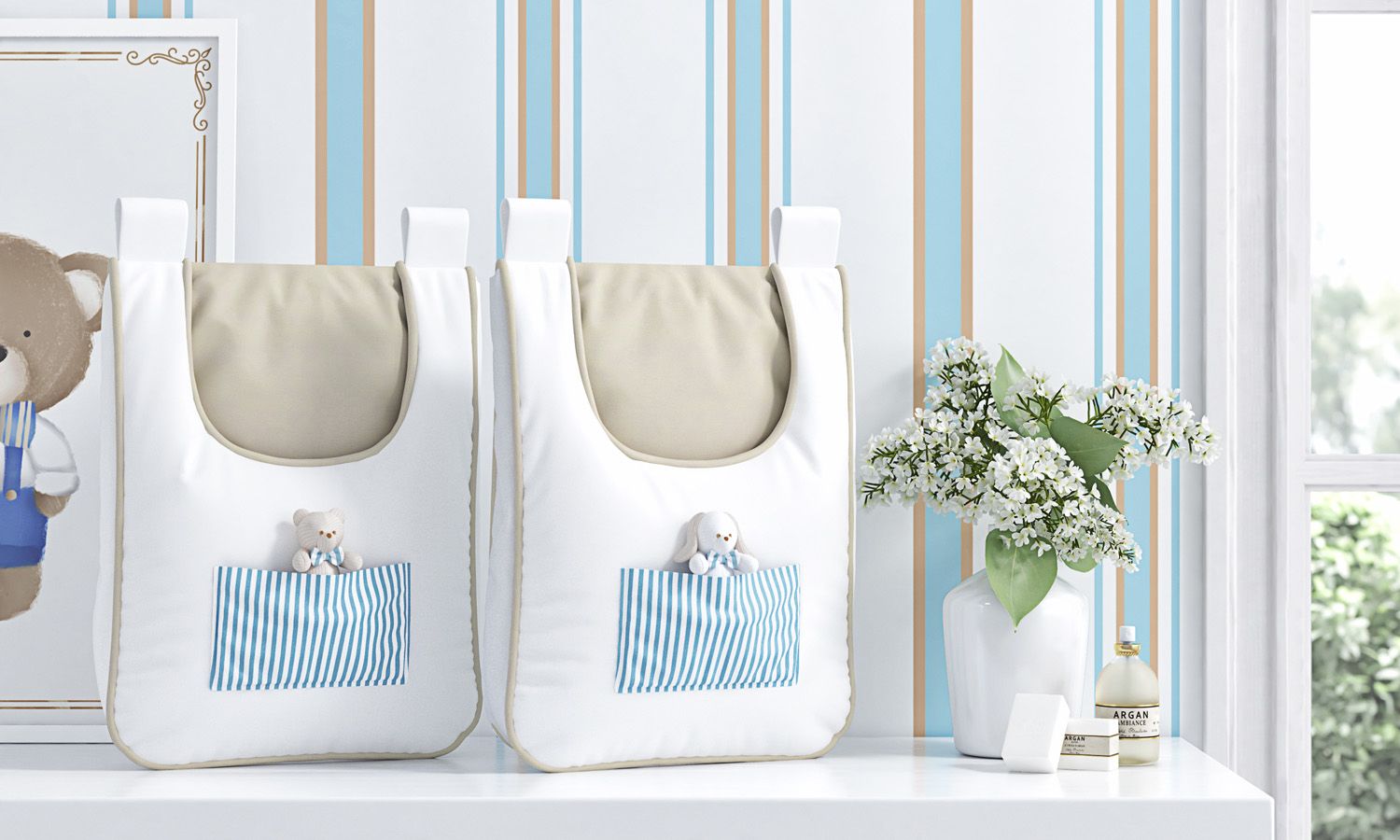 Porta Fraldas Varão Listrado Luxo Azul