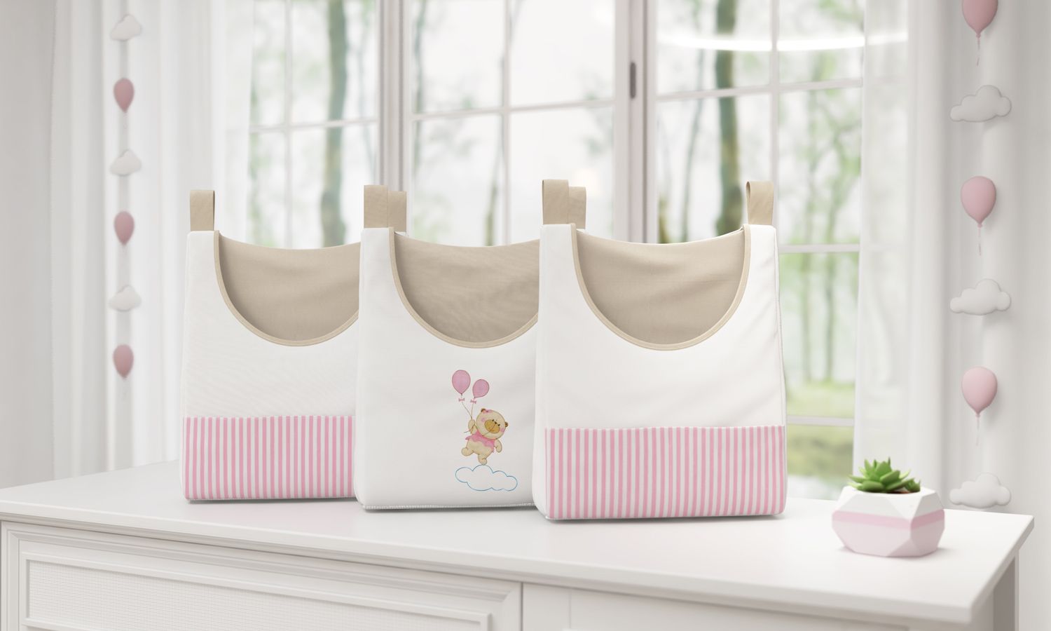 03 Porta Fraldas Varão Ursinha Nina e o Balão 45cm alt. x 35cm larg. (cada)