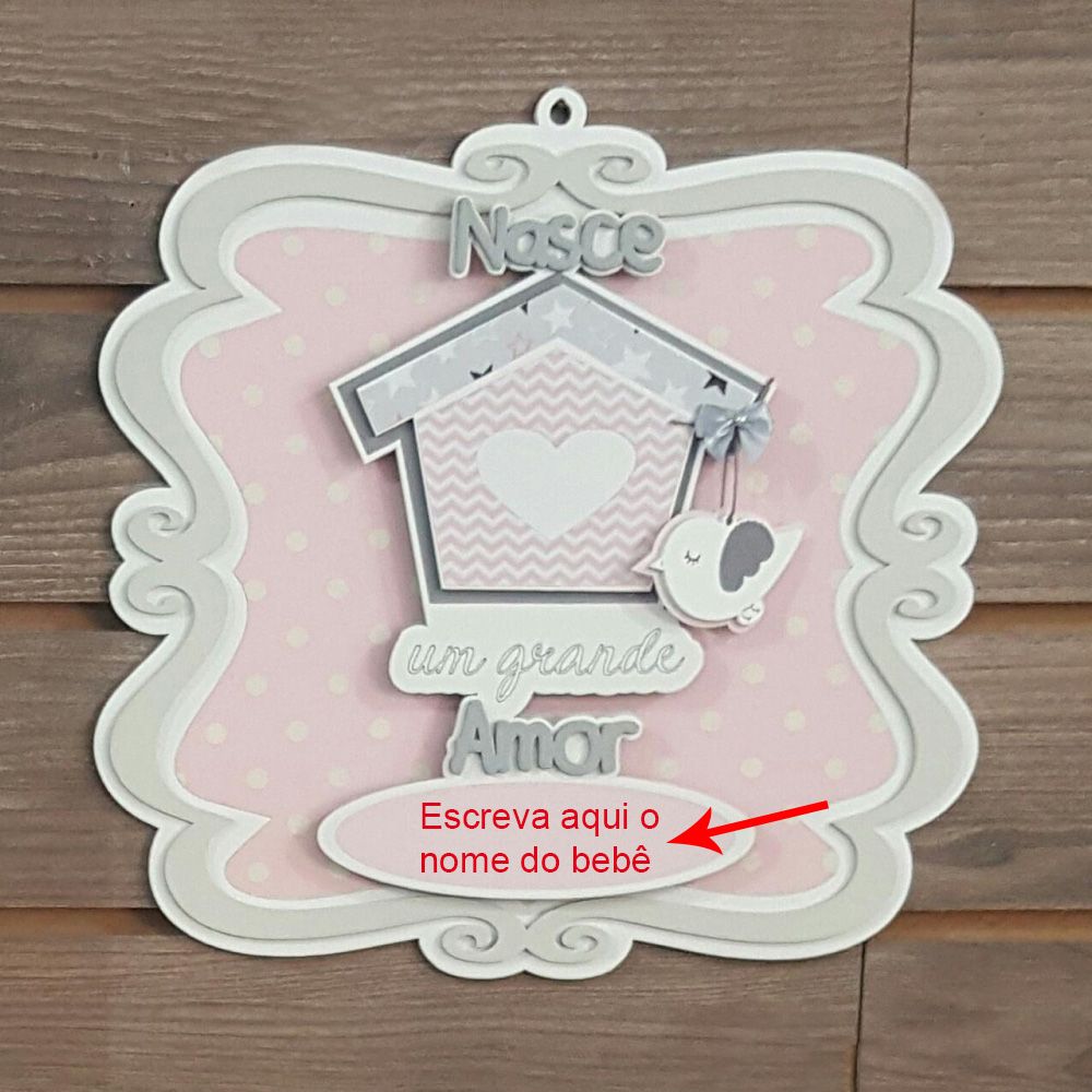 O carinho pela pequenina ficam destacados na portinha da maternidade com o Porta Maternidade MDF Casinha com Passarinho 3D. A frase nasce um grande amor reflete o sentimento tão bonito que existe no coração das mamães, papais e toda a família. Já a estrelinha e os detalhes em MDF dão todo um charme para uma decoração meiga e delicada!