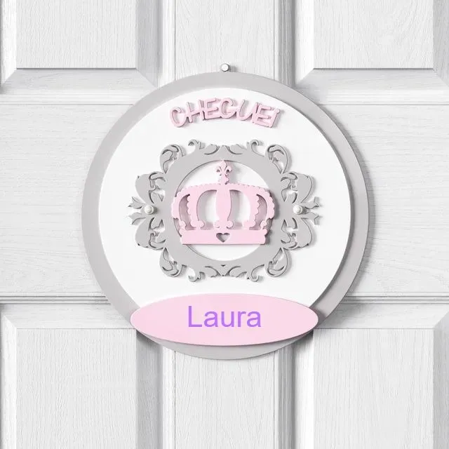 Porta Maternidade Personalizado Coroa Arabesco Rosa - Laura