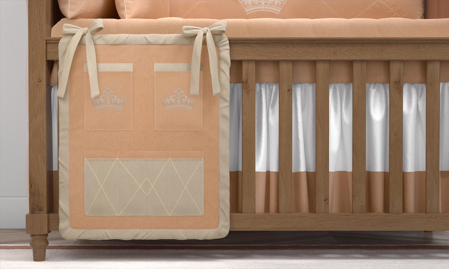 Manter o quarto de bebê sempre organizado pode se tornar uma tarefa difícil, já que a rotina de cuidados com o recém-nascido é intensa. Por isso, é importante ter um lugar reservado para cada coisa! O Porta Treco Princesa Rosé Premium conta com cinco bolsos para guardar os mais variados objetos, desde mamadeiras e chupetas, até fraldinhas, pacotes de lenço e brinquedinhos. Esse modelo já vem com laços para fixação no berço, além dos lindos bordados em forma de coroa.