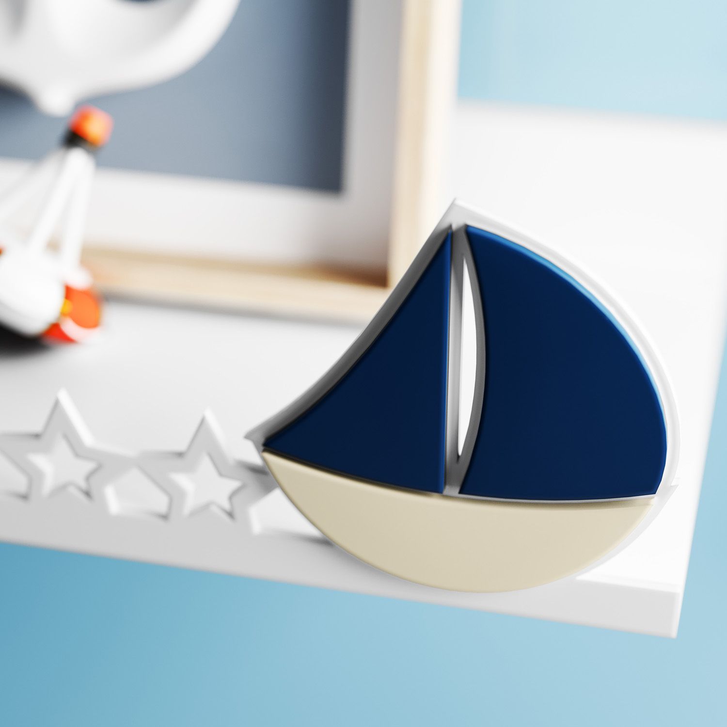 Invista na tendência navy com a praticidade e o toque lúdico da Prateleira MDF Barquinho Azul Marinho, exclusiva da Grão de Gente! Além de completar a decoração do quarto de bebê com charme e originalidade, essa prateleirinha de madeira é ótima para organizar o ambiente, já que você pode apoiar livros, bichinhos de pelúcia ou outros enfeites. As estrelas e o barquinho são feito de MDF cortado a laser com pintura semi-brilho em branco, azul marinho e bege. Conheça todos os produtos do Quarto Ursinho Marinheiro para coordenar enxoval e décor!