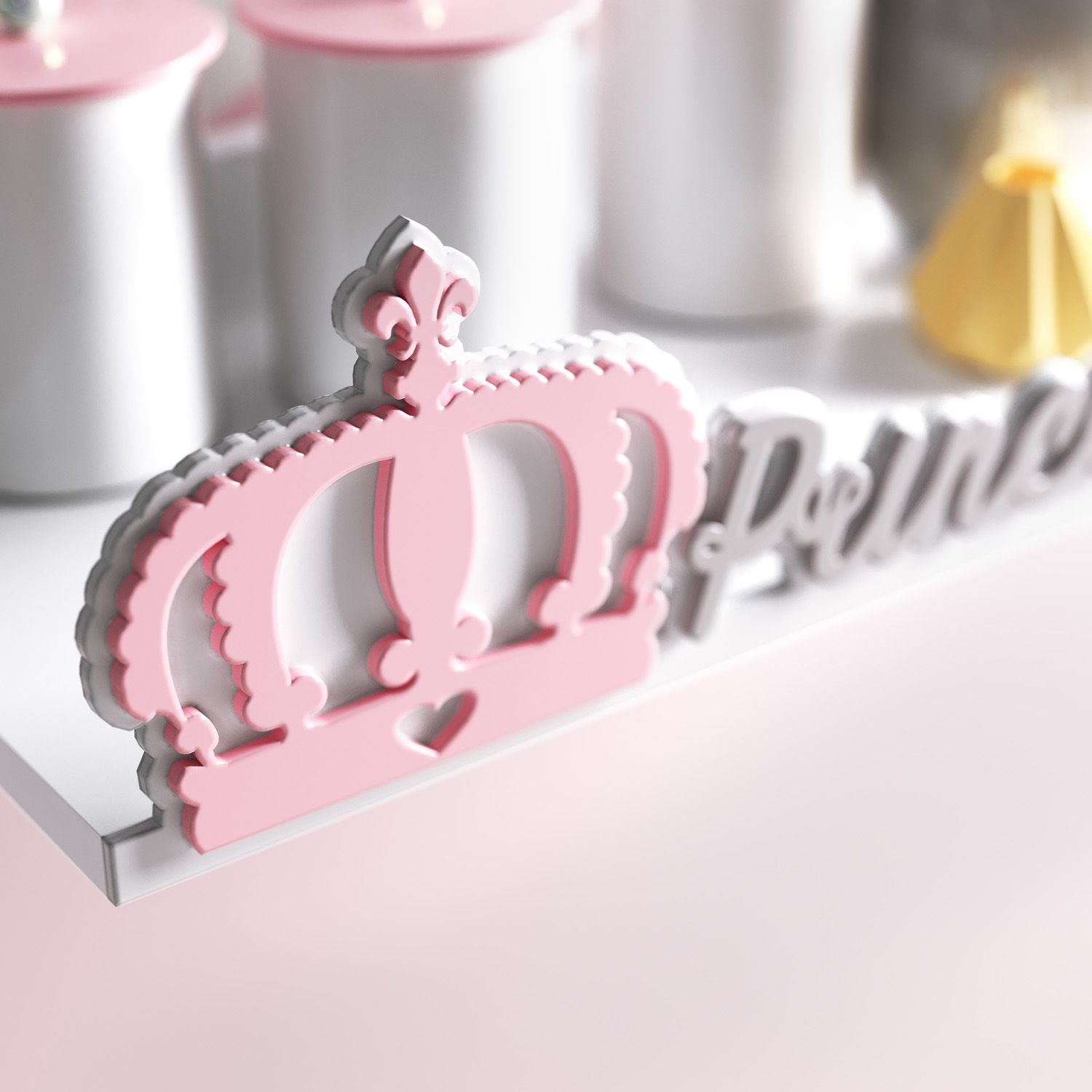 Prateleira MDF Menina Princesa Rosa e Cinza