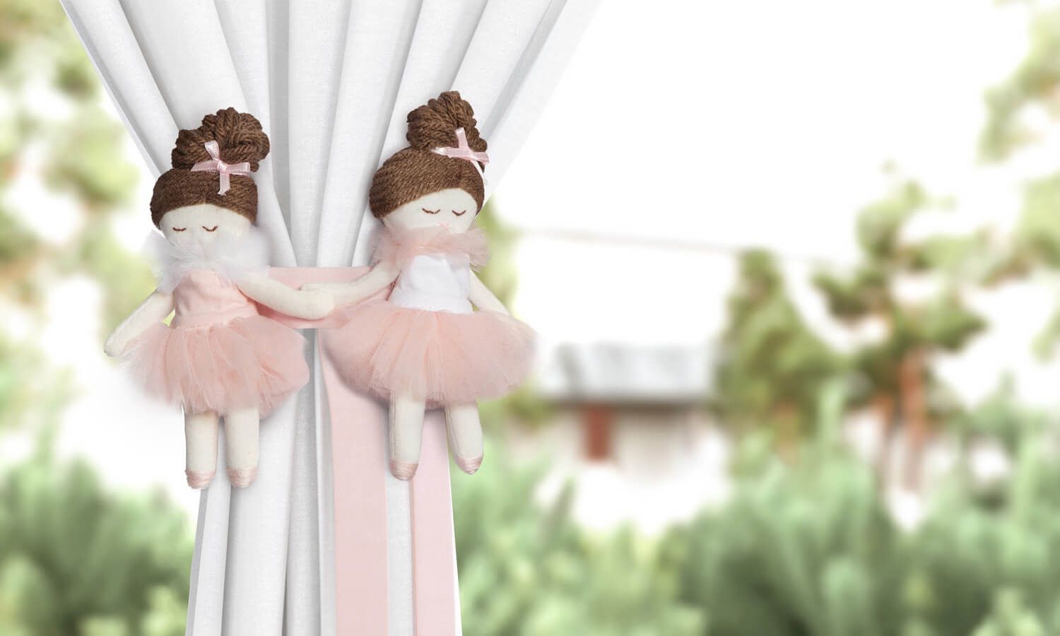 Para posicionar a cortina do jeitinho que você preferir, nada melhor que o Prendedor de Cortina Bailarinas Trapezistas da Linha Sabrina Sato Mom. Com o formato de bailarinas vestindo um meigo corpete nas cores rosé e branco, esses acessórios se destacam com as delicadas franjinhas tassel, que acrescentam charme para esse belo prendedor.