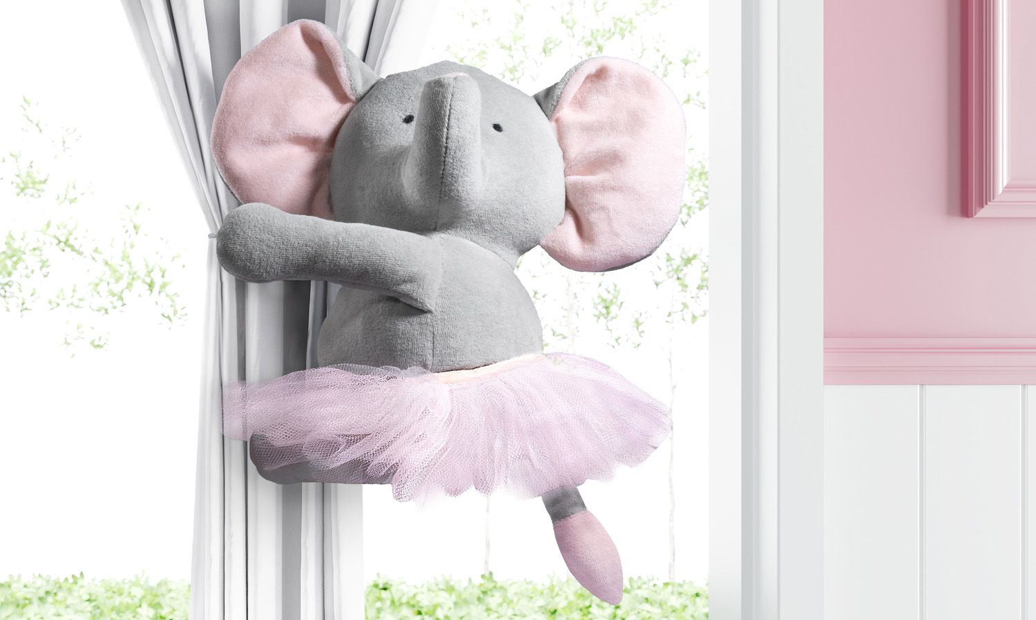 O Prendedor de Cortina Elefantinha com Saia Tutu Rosa é cheio de meiguice e delicadeza! Duas lindas elefantinhas de plush cinza com saia de tule rosa prendem os xales da cortina conforme as mamães e os papais preferirem. Um detalhe fofinho e encantador para decorar o quarto de bebê e tornar a cortina ainda mais funcional!