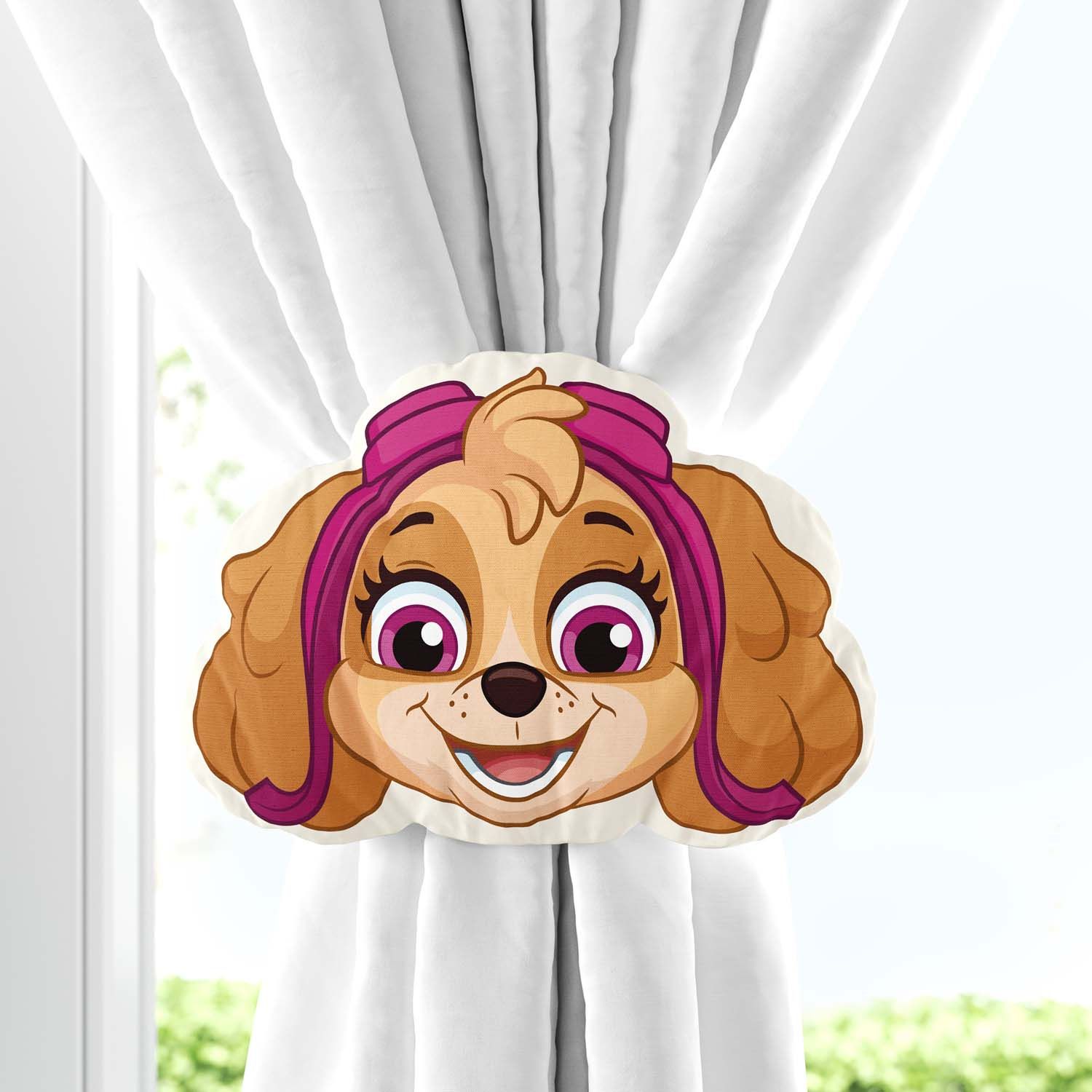 O Prendedor de Cortina Skye Patrulha Canina Rosa é uma criação exclusiva da Grão de Gente para decorar o quarto infantil de maneira lúdica e divertida.