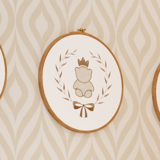 Quadro Bastidor Bordado Ursinho Clássico Palha