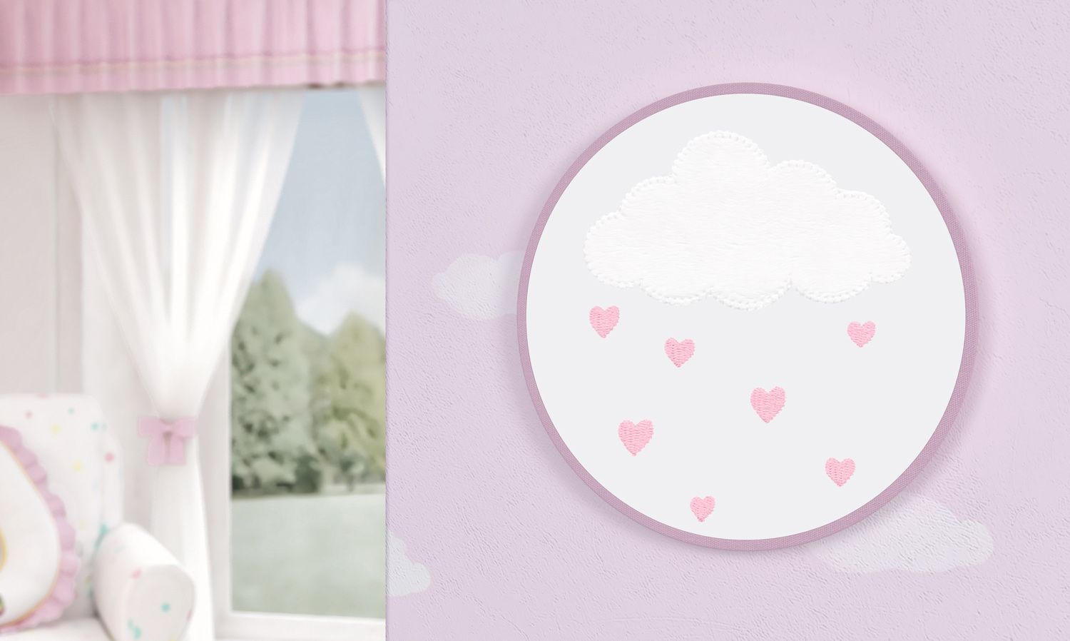 Chuva de amor no quarto de bebê da sua princesinha! Os bordados de uma bela nuvenzinha repleta de coraçõezinhos se destacam no Quadro Bastidor Chuva de Amor. Criado especialmente para as mamães e papais que não abrem mão de enfeitar o quarto de bebê do jeitinho que sempre sonharam. Com moldura confeccionada em madeira MDF e tecido bordado, esse quadrinho é um mimo e vai ficar uma graça no cantinho mais especial da casa!