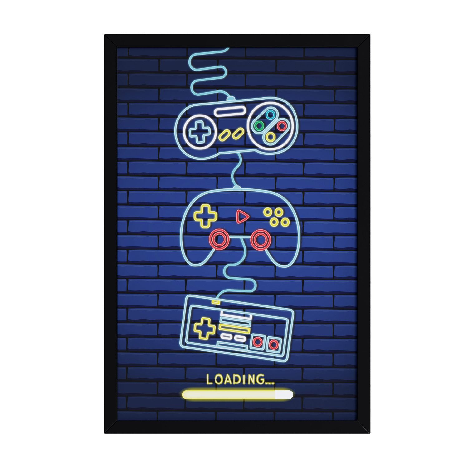 É hora de recarregar as energias e dar play na diversão! O Quadro Gamer Loading é uma criação exclusiva da Grão de Gente para complementar a decoração do quarto infantil com um toque moderninho e criativo.