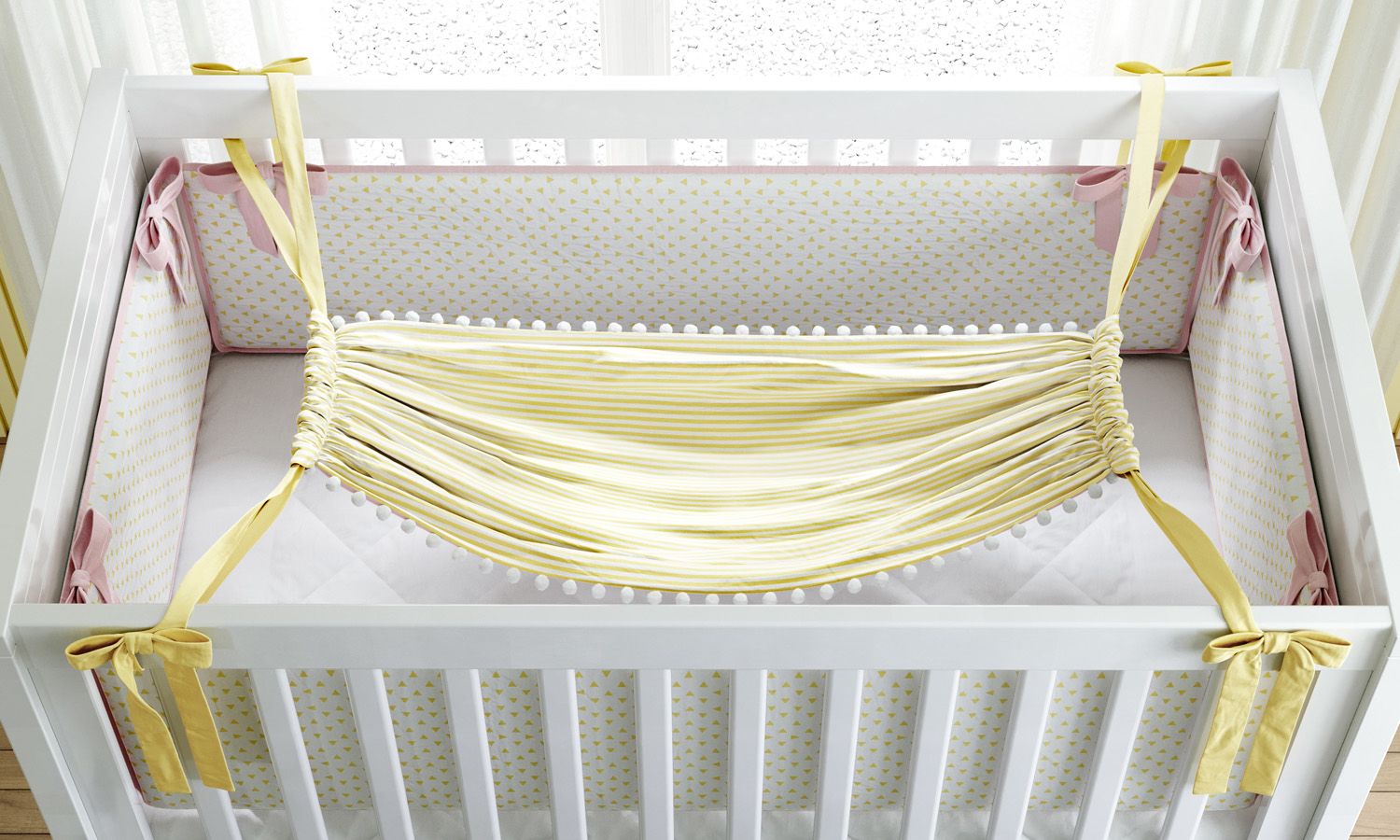 Rede para Berço Dupla Face Listrada Amarela/Rosa