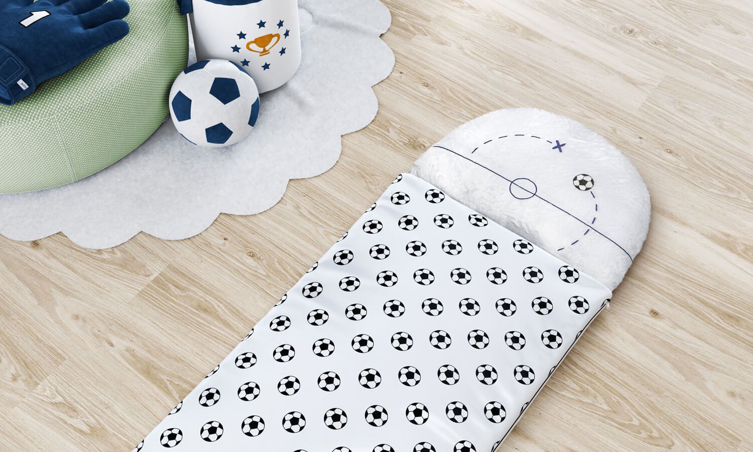Saco de Dormir Infantil Bolas de Futebol 1,60m