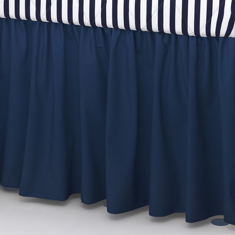 A Saia de Berço Piratinha finaliza a decoração do quarto de bebê com a sofisticação do azul-marinho! Numa fina confecção, esse tecido de 1,35 metros de altura preenche o espaço abaixo do colchão e cobre o estrado do berço, enriquecendo o ambiente com o bom gosto que as mamães sonham. Graças à escolha de cor, a peça combina com diversos estilos e temas de quartinho masculino. Para usá-la, basta levantar o colchão e posicionar a saia sobre o estrado, deixando os babados caírem pelas laterais.