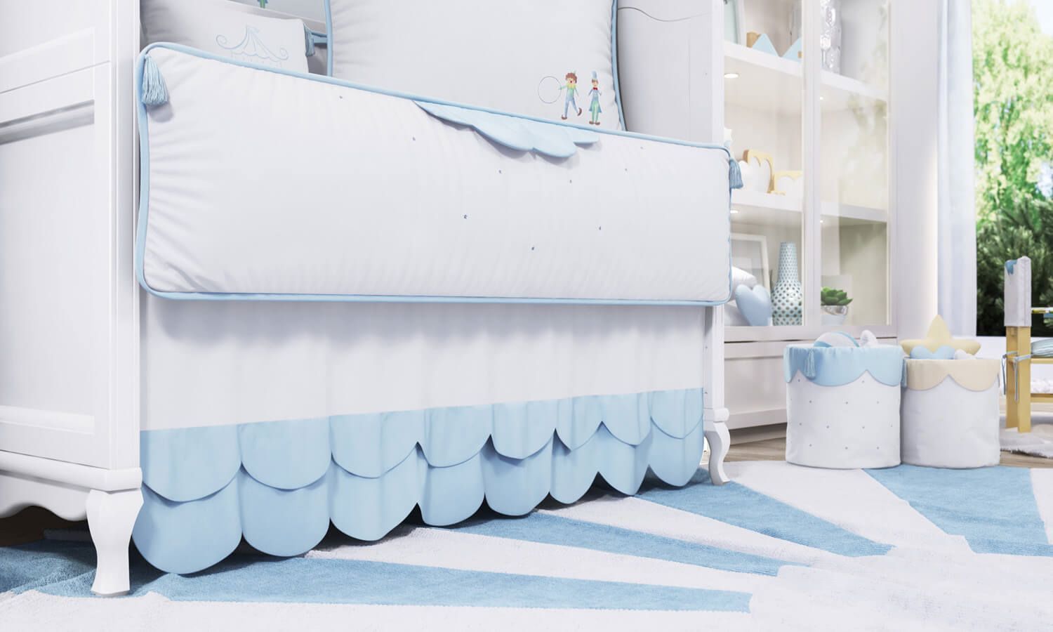 Além de decorar, ela preenche o espaço vazio, esconde o estrado do berço e pode esconder itens pouco usados no espaço coberto pelo acessório. Basta levantar o colchão e posicioná-la sobre o estrado, passando os babados duplos pelas laterais. Confeccionada com a maciez do tecido, sinônimo de qualidade para o quarto dos sonhos.