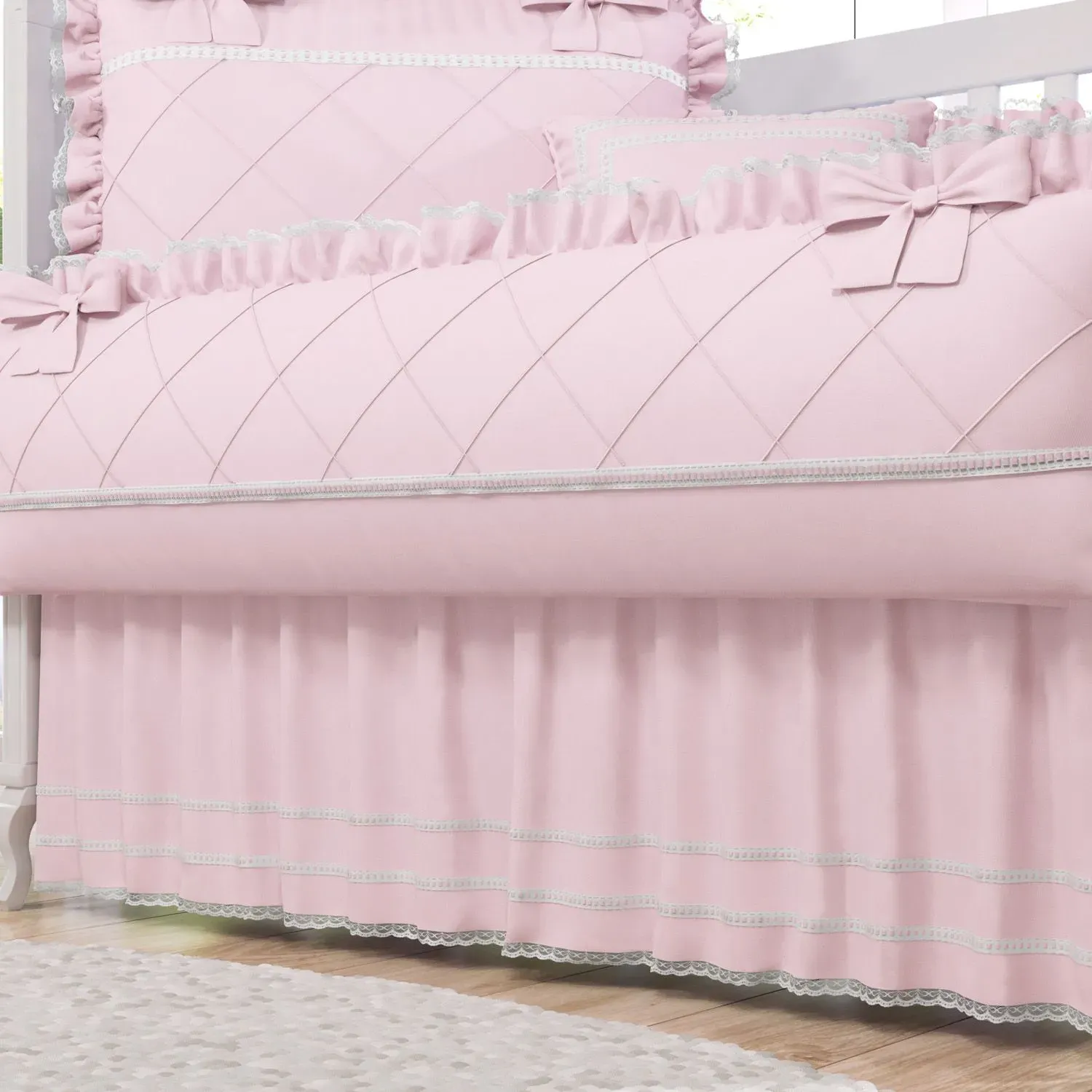 Saia de Berço Barra Passa Fita e Renda Rosa