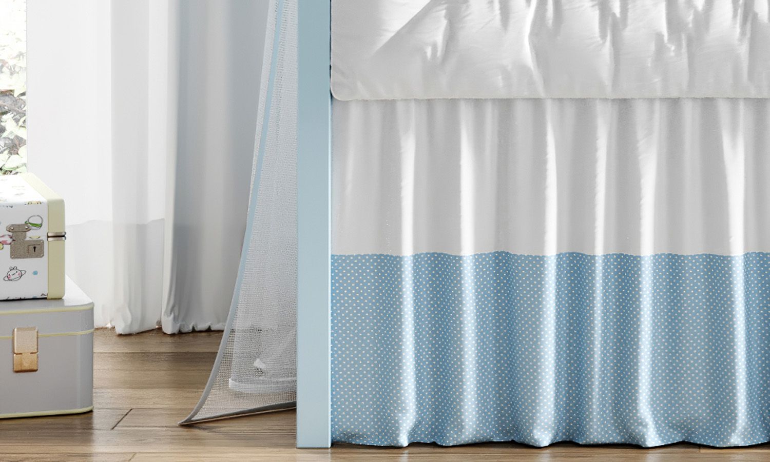A Saia de Berço enriquece a decoração do quarto de bebê. Perfeita para quartos de menino com qualquer tema. Uma peça prática e leve com 2 caídas franzidas para cobrir o espaço abaixo do colchão e esconder o estrado do berço com charme e movimento.