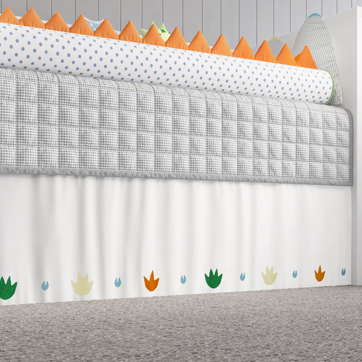 A Saia de Berço Pegadas de Dinossauros, traz um visual super divertido ao ambiente. Esse acessório enriquece a decoração do quarto de bebê com duas caídas franzidas para cobrir o espaço abaixo do colchão e esconder o estrado do berço com charme e movimento.
