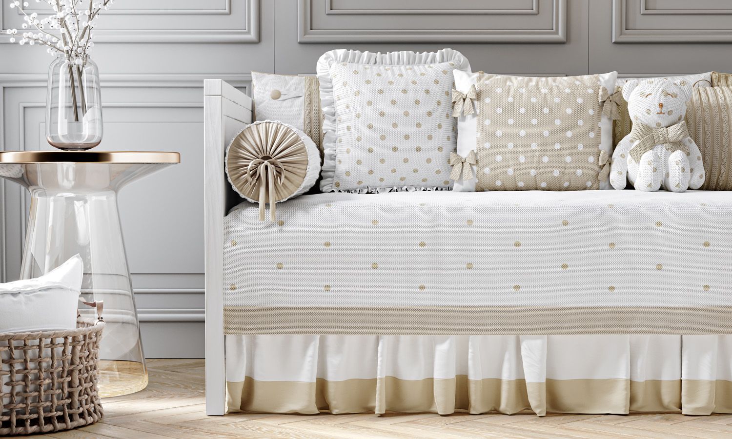 A Saia para Cama Babá Branco/Bege complementa a decoração do quarto de menino ou menina com suavidade e requinte. Com babado branco e barra na tonalidade bege, essa peça-chave combina com diferentes estilos de enxoval, cobrindo o espaço abaixo do colchão com charme e elegância.