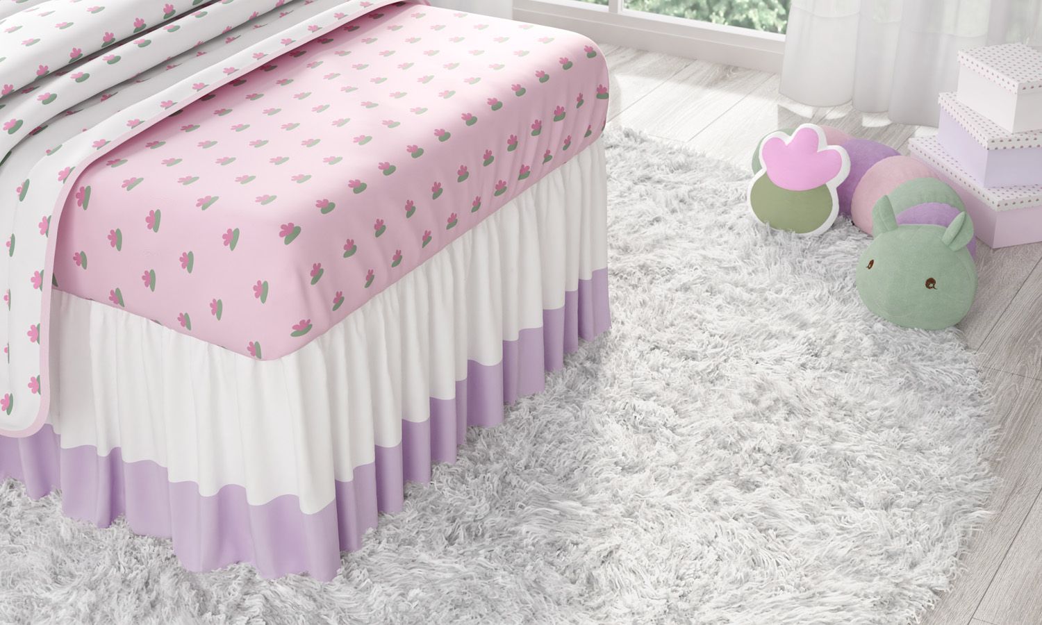 As mamães e os papais cuidam de cada detalhe do quarto de menina com muito amor, para caprichar e enfeitar ainda mais o cantinho da sua princesa, a Saia de Cama Infantil Floral Monet é a indicação da Grão de Gente. Esse acessório deixa a caminha bastante delicada, esconde os pés da cama e ajuda a proteger e prolongar a vida útil das caminhas, tudo com as lindas e suaves cores branco e lilás!