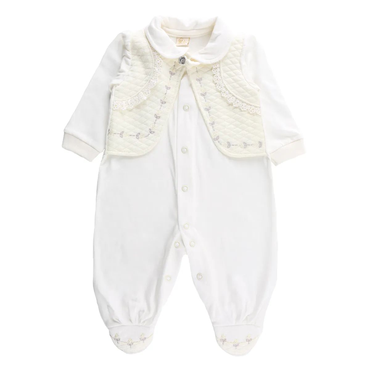 Saída de Maternidade Din Don Detalhe Colete Bordado Flores Off White