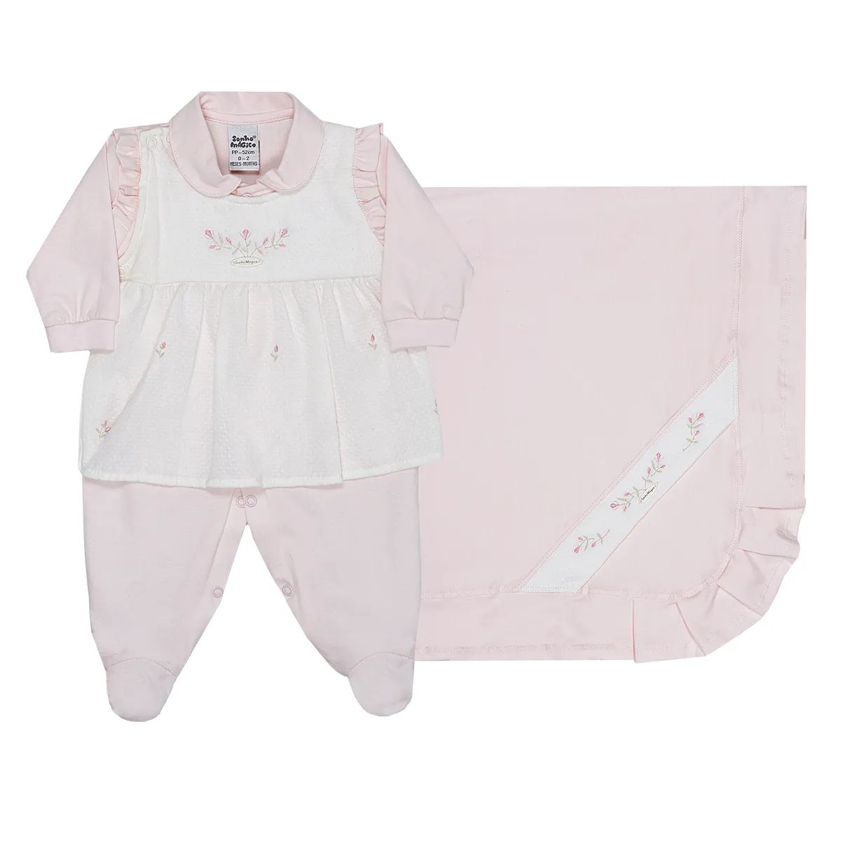 Saída De Maternidade Sonho Mágico Bordado Flores 2 Peças