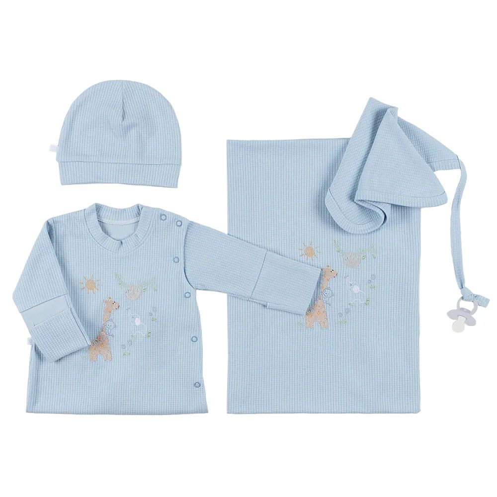 Saída Maternidade Fofinho com Detalhe Bordado Girafinha Azul