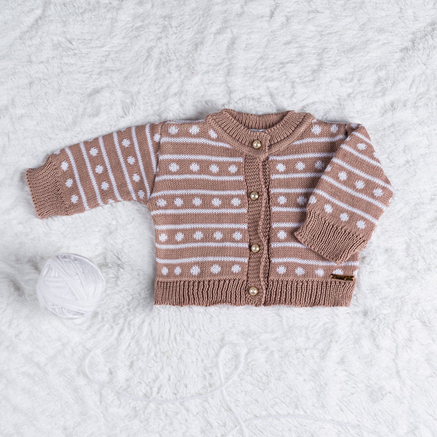 Saída Maternidade Tricot Clássico Poá Nude Rosé 03 Peças