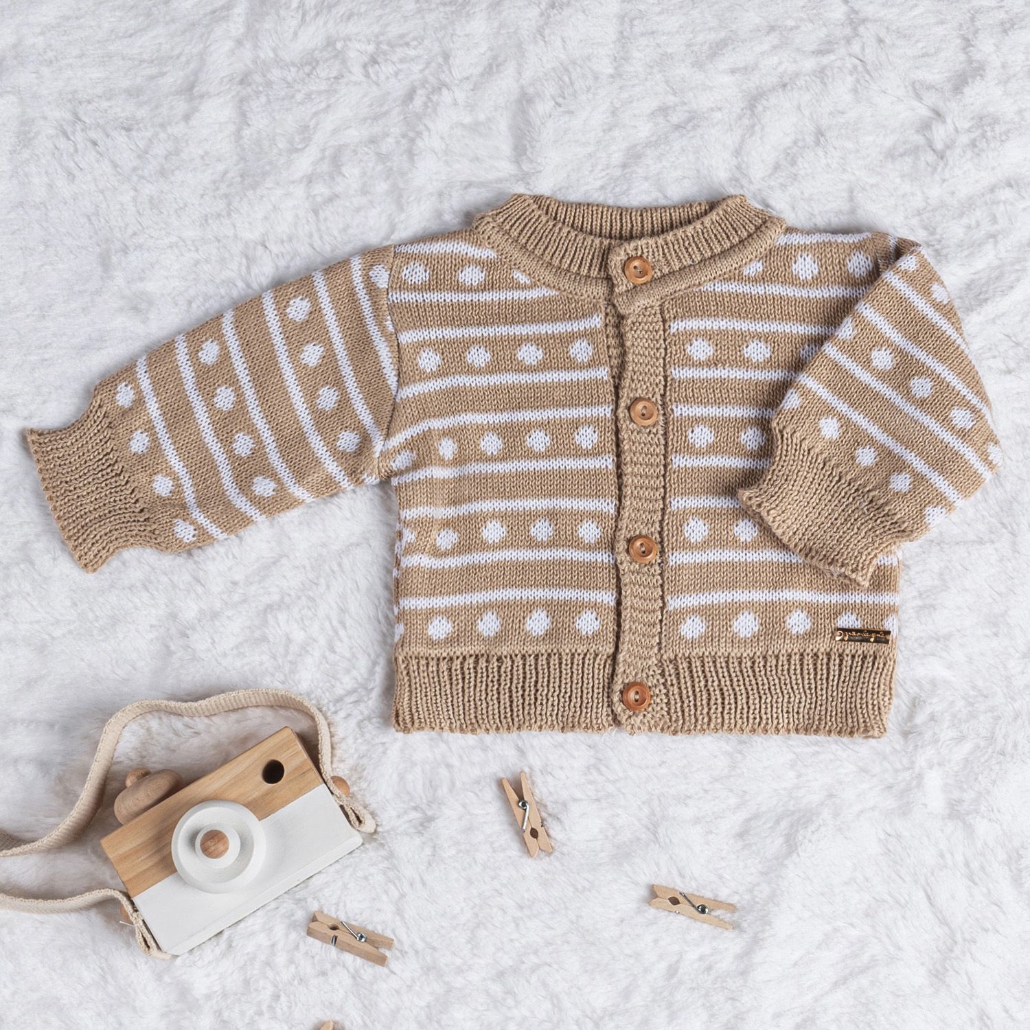 Saída Maternidade Tricot Conjunto Clássico Poá Capuccino 02 Peças